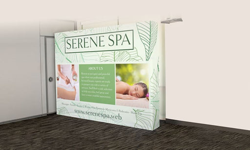 Stand out at events with a custom pop-up display. 2 size options Aluminum frame Machine-washable fabric Hook & loop fasteners Included sof...